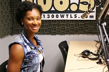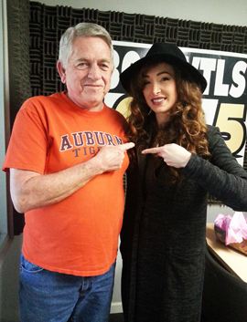 Tallassee's own and Atlanta Falcons cheerleader Jennifer Turner with Miles Hathcock in the WTLS studio |
