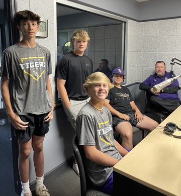 Miles Hathcock, Jonathan Ingram, Jennifer Hornsby, Allison Stewart and John David Lambert from the THS Class of 1995 Georgia Anne with Tiger Cubs Ian Pendergrass and Cayden Strum during her weekly radio show Kennon Reese in studio after winning his Author Mike Darnell with Michael and CW in studio Shane with Donica Knight Charles from Reeltown and Ms. Knight Players from Tallassee 6U 2016 state championship team with coach Jamie Patterson Michael with longtime listener Loletha Webster 2017 THS senior majorettes; Jade Snell, Pashen Cartwright, Morgan Steele, Laura Fields and Harley Yankey on the Wake-Up Call Michael with country music legend John Conlee at Tallassee High School in February of 2018 WTLS faithful listener Kevin Teague in the control room Tallassee school board member Rex Ledbetter (left) and superintendent Brock Nolin with masks on during the COVID-19 pandemic Lindy's Sports Lyn Scarbrough with wife Cindy Brian from Eclectic Tallassee junior varsity baseball players Jack Butler, Carter Sayers, Bryson Rigsby and Brody Wisener with Coach Justin Ellis talking about their undefeated season in 2023 Tallassee Anglers coach John Goodman with team members talking about their 2023 state championship Coaches and players from the 2024 TYFL before the playoffs Tallassee wrestling celebrating the blue trophy in 2025 (left to right): Coach Dustin Cook, Coach Phillip Nelson, Mason Nelson, Thomas Patterson, Coach John Mask, Land Bell. NFL Coach and former Tallassee Tiger Derrick Ansley with Michael |