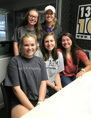 Graham and Michael with Bo Jackson at Children's Harbor Bryan Jackson, Colt Prince and Keith Moody Roger Shultz in the studio for "In the Trenches" Donica with Jack and Michael Butler Michael with recording artist Jessie Lynn 2017 State Youth Wrestling Champion Mat Cats Jamelle Jelks with students from Brighter Day Childcare Alabama softball player Elissa Brown in the studio 2018 THS volleyball coach Katie Rigsby (top right) with some of her players; Kayla Jolly (top left), seated (left to right): Madelyn Martin, Mary Kate Lackey, Ivory Champion. Ella Prince with her chicken Anne pictured with Michael and Wild Gene 2020 Picks Champion Byron Taylor with Michael Butler Brooke Rigsby giving Brian a makeover on Friday Fun Day Members of Tallassee's Smallmouth Division state championship team (standing, left to right): Eli McCraney, Grant McCraney. (Seated, left to right): Michael Markham, Carter Davidson, Cason Hornsby, Brandon Goodman. Some of the players from the Tallassee 13U all-star state champion team from 2023 THS Robotics (from left): Trey Bosch, William Pendergrass, Michael Moore, Ivy Davis, Madison Hughes National Honor Society students from Tallassee High School at the station in 2024 (Cam Mask, Amari Parker, Lily Love, Marlee Osborne, Nathan Mason) Ansley with Shane |