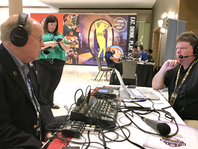 Brett and Gary Buchanan with Michael Butler and Graham Dunn on Radio Row at Media Days Country & Steve Stokes