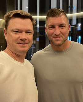 Michael and the Bear Michael with Tim Tebow at 2022 SEC Media Days in Atlanta